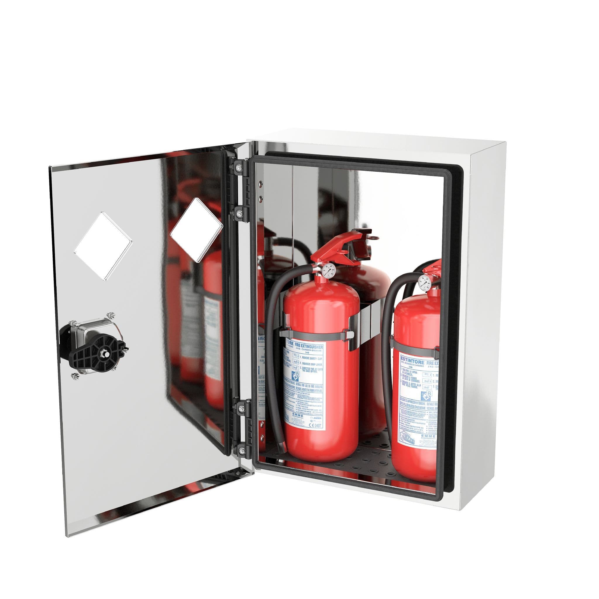 - Bright stainless steel fire extinguisher box is manufactured from 1.5mm thickness polished stainless steel.